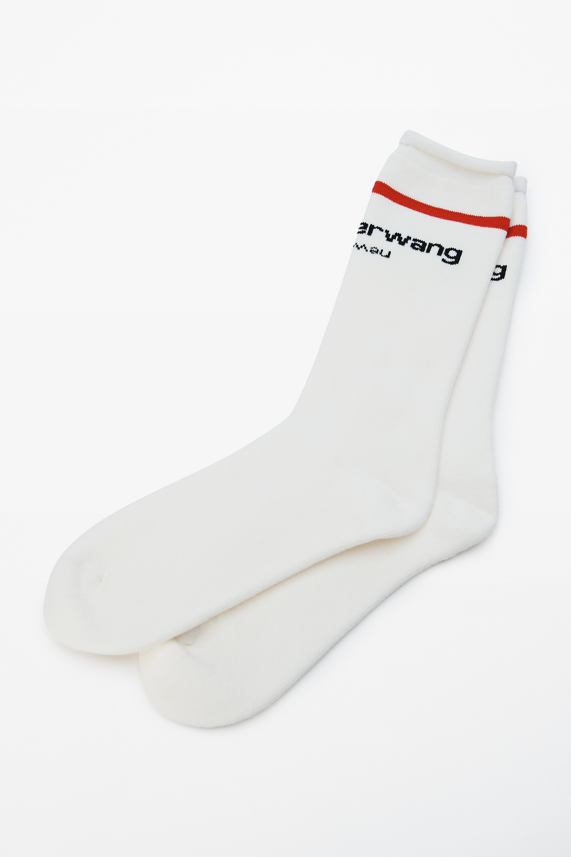 An accent stripe defines this organic cotton terry crew sock with a stylized rolled edge. A jacquard logo spans the front calf, giving a bold branded finish to a classic everyday essential. - White - Crew length silhouette - Rolled edge finish - Body composition: 93% cotton / 6% polyamide / 1% elastane - Made in China - 1KC1269138100 composition Body: 93%COTTON/6%POLYAMIDE/1%ELASTANE