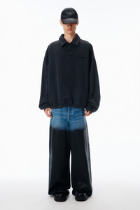 Washed black organic dry terry polo in an oversized long sleeve cut. Designed with a self collar, two-button placket, rib trims, and an embroidered chest logo. - WASHED BLACK - Self collar - two-button placket - Body composition: 100% cotton - Trim: 100% cotton - Made in Portugal - Model is 6'1" and Wears a Size M - 6CC1261126011 composition Body: 100%COTTON Rib Trim: 100%COTTON