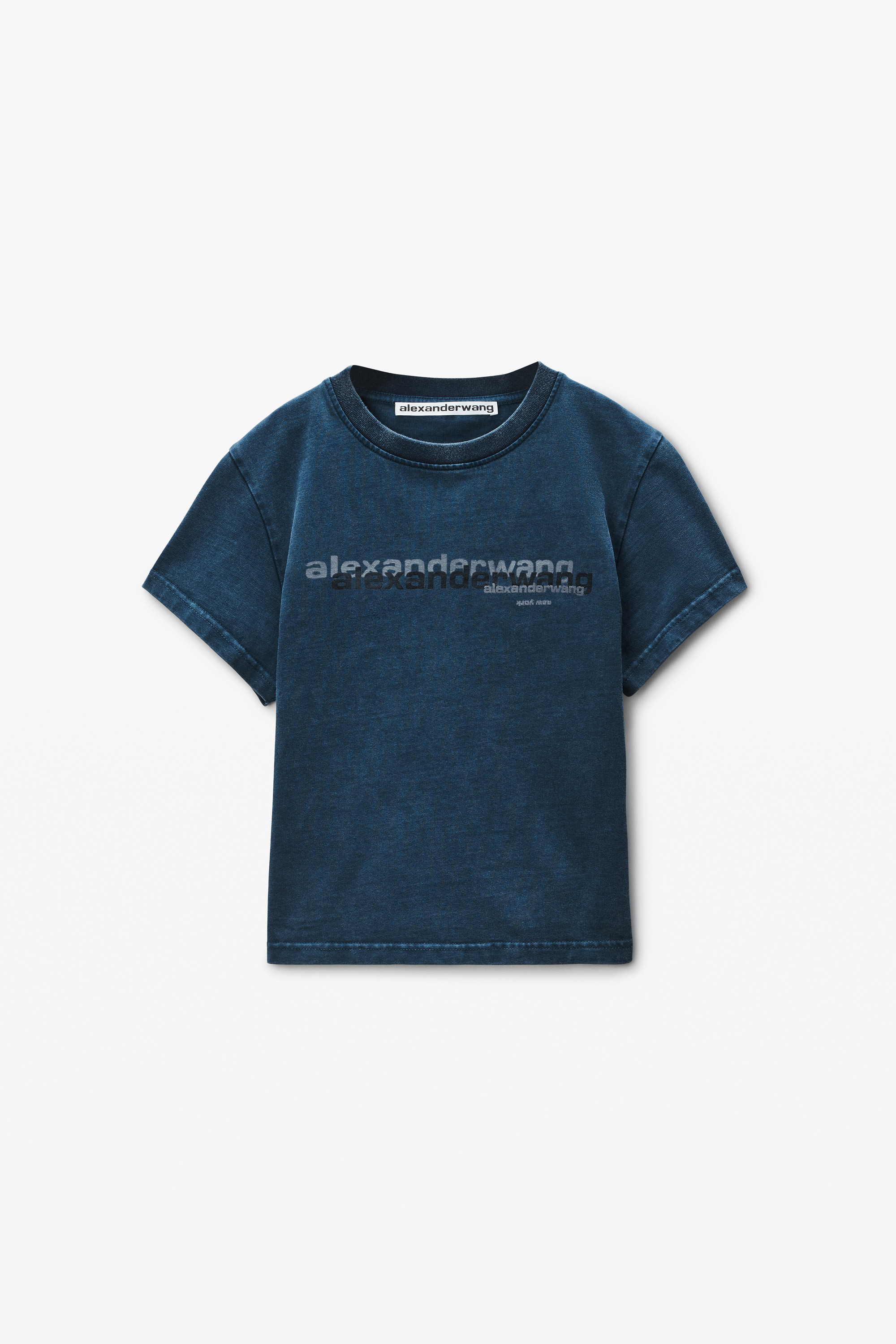 A distressed logo print with embroidered detailing defines this shrunken cotton tee in washed navy. - crewneck - short sleeves - body composition: 100% cotton - trim: 99% cotton/1% elastane - made in Portugal - model is 5'11" and wears a size s - 1CC3251103421B composition Body: 100%COTTON Rib: 99%COTTON/1%ELASTANE