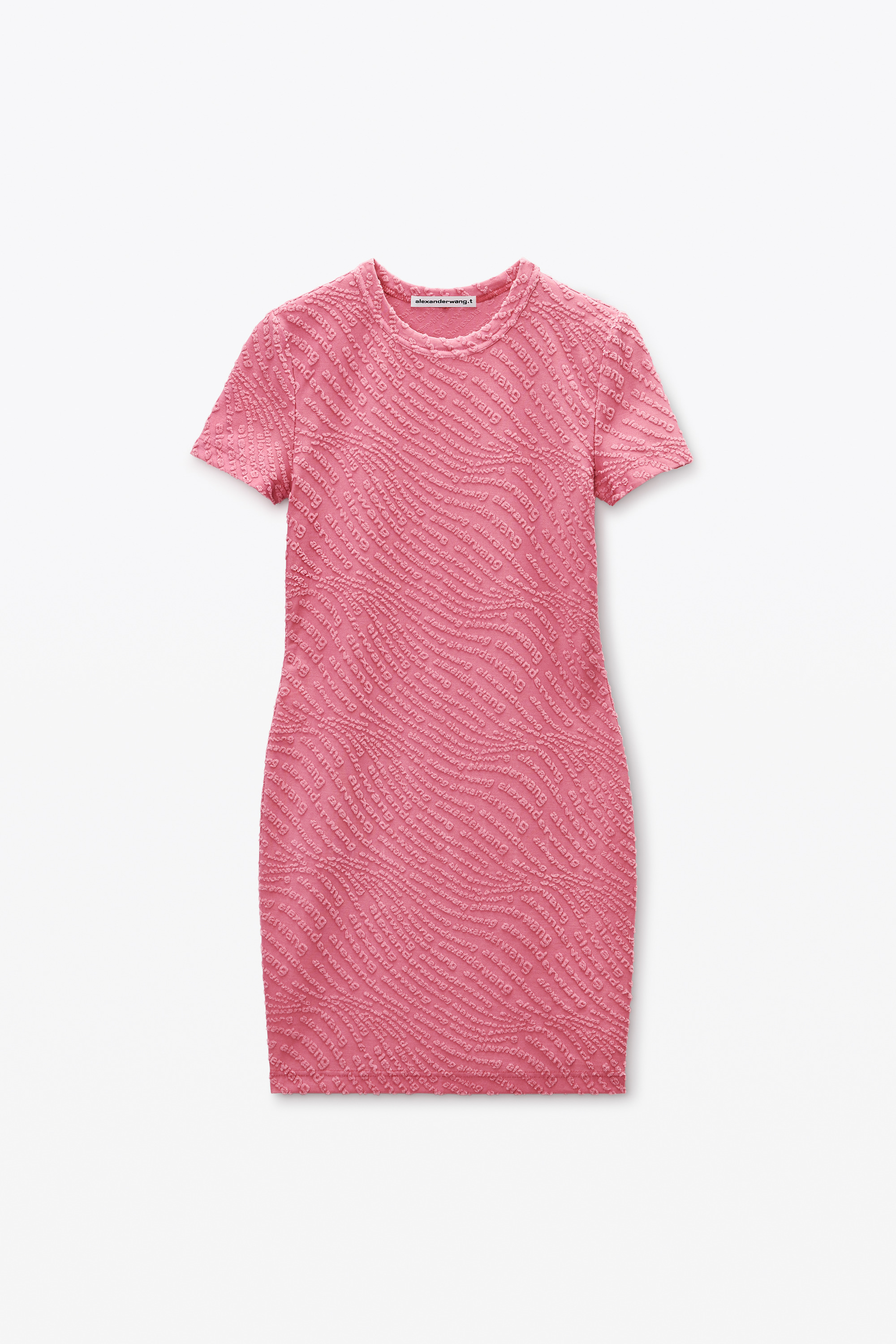 Allover logo jacquard animates this shrunken minidress in lotus pink. - crewneck - short sleeves - hits at thigh - body composition: 96% polyester/4% elastane - made in china - model is 5'11" and wears a size s - 4CC3256827957 composition Body: 96%POLYESTER/4%ELASTANE
