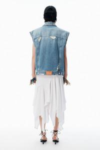 Edged with eclectic hardware details, this powder blue oversized denim trucker vest is cut in a boxy fit, featuring frayed armholes and fastening with logo shank buttons for a distinctive finish. One size. - spread collar - sleeveless - one size - body composition: 100% cotton - made in china - UDC3252816496A composition Body: 100%COTTON Rib: 99%COTTON/1%ELASTANE