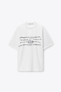 Oversized white cotton tee in dry jersey with ribbed collar and cuffs. Center chest features a photorealistic chain ID bracelet graphic. Designed with a relaxed drop-shoulder fit. - white - crewneck - rib trim at neck and sleeve cuffs - body composition: 100% cotton - trim: 99% cotton/1% elastane - Made in Portugal - Female Model is 5'11" and Wears a Size S - Male Model is 6'1" and wears a size M - UCC1261892100 composition Body: 100%COTTON Rib Trim: 99%COTTON/1%ELASTANE