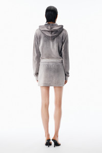 Titanium shrunken zip-up hoodie in crushed snow velour with allover tossed hotfix crystal detailing. Embossed with a stacked wang logo at the chest and finished with a kangaroo pocket and tonal zipper closure. - Titanium - shrunken fit - body composition: 100% cotton - trim: 100% cotton - Made in China - Model is 5'11" and Wears a Size S - 4CC1262694040 composition Body: 73%COTTON/27%POLYESTER Rib Trim: 99%COTTON/1%SPANDEX