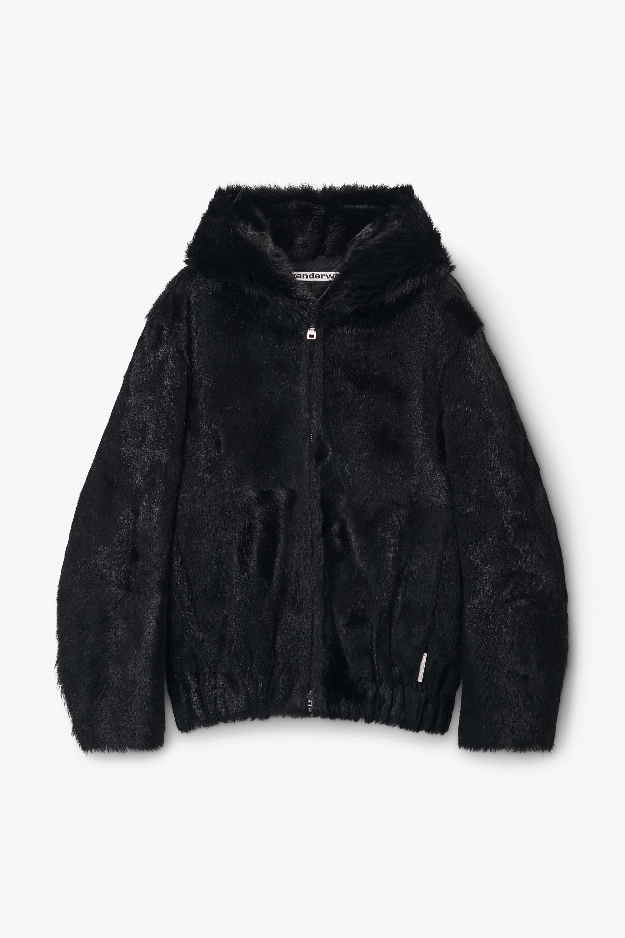 Sumptuous black calf hair elevates this zip-up hoodie. - unisex fit - attached hood - front-zip closure - kangaroo pockets - body composition: calfskin - lining: viscose - lining 2: calfskin - made in south korea - male model is 6'1" and wears a size m - female model is 5'10" and wears a size s - UWC1252056001 composition Body/Exterieur: 100%CALFSKIN Lining: 100%VISCOSE Lining 2: 100%CALFSKIN