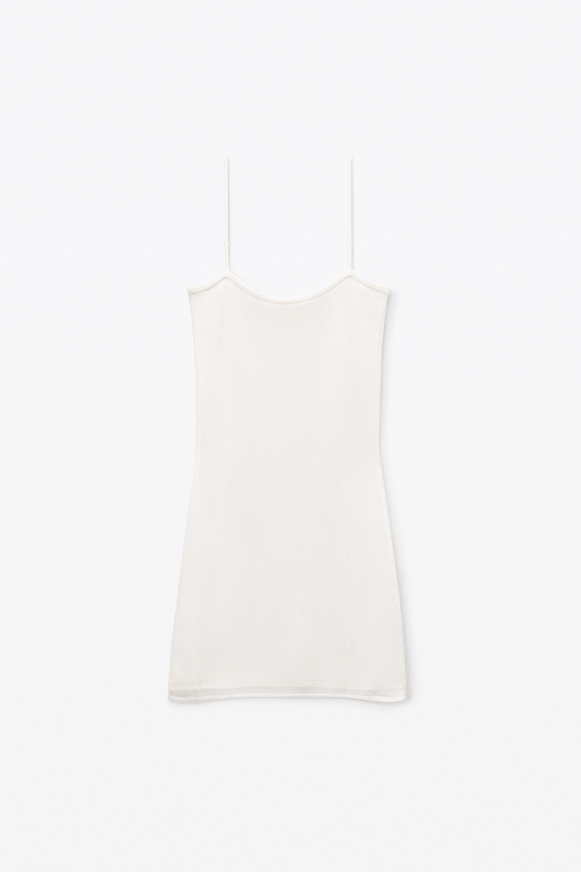 Two hundred fifty thousand clear hotfix beads illuminate this soft white cami dress. Its sheer jersey stitch gives the mid-thigh style a slinky-soft feel, finished with a full lining. - crewneck - button placket - relaxed fit, hits above waist - body composition: 100% viscose - trim: 83% viscose/17% polyester - made in china - model is 5'10" and wears a size s - 1KC3256056104 composition Body: 100%VISCOSE Trim: 83%VISCOSE/17%POLYESTER Lining: 77%VISCOSE/20%POLYAMIDE/3%ELASTANE