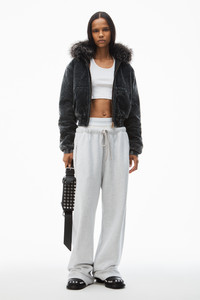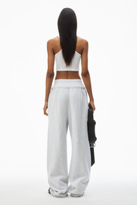 Light heather grey wide leg sweatpants in cotton unbrushed terry with exposed rib brief featuring logo elastic trim - adjustable relaxed fit - full length - drawcord fastening - metal zippers at pockets - cut on cross grain, overdyed, and finished with acid wash - unlined - body composition: 100% cotton - brief composition: 65% cotton/ 29% polyamide/ 6% elastane - made in Portugal - model is 5'11" and wears size s - 4CC1244349050 composition Body: 100%COTTON Combo: 65%COTTON/29%POLYAMIDE/6%ELASTANE