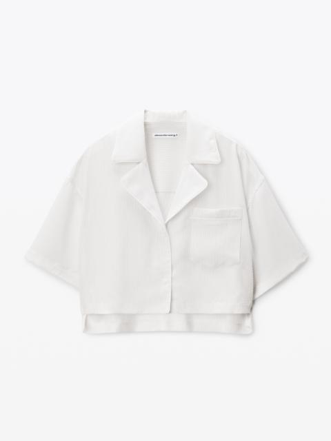Vintage-Effect Marbled Blue Denim Foldline Shirt