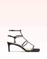 Meet the Amanda Swarovski 60 sandal, a flawless combination of elegance and enduring style. Made from premium leather, this design features slender straps adorned with Swarovski crystals, including a Salome-style central strap, thoughtfully positioned over the toes, instep, and heel. Its versatile and refined silhouette is finished with a polished shine that exudes sophistication. Heel Style: Stiletto Hell Height: 0,4 In | 10 mm Heel Type: Square Toe Material: Leather | Leather Sole SKU: B0605100010012