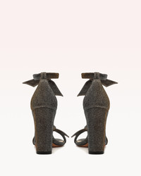 A 90mm block heel updates our timeless Clarita Sandal. Hand-crafted from smooth leather, the elegant silhouette showcases two of our iconic bow embellishments. The versatile stellar hue will complement any look from day to night. Please note: this style runs small. We suggest taking half size larger than your normal size. - Material: Notturno Fabric - Rubber heel patch at leather sole - Block high-heel - Round open toe - Heel height: 3.6in | 90mm - SKU: B3503900770028