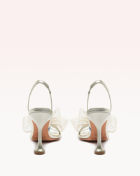 Topped with an oversized tulle rosette, the Isabelle Crystals Bridal heel is a fashion-forward style with statement-making impact. A minimalist slingback strap and our signature flared stiletto heel completes the look of this metallic champagne leather pair. - Material: Kid Soft Metal & Tule & Hotfix - Leather sole - Geometric heel - Round toe - Heel height: 3.4in | 85 mm - SKU: B3578200130001