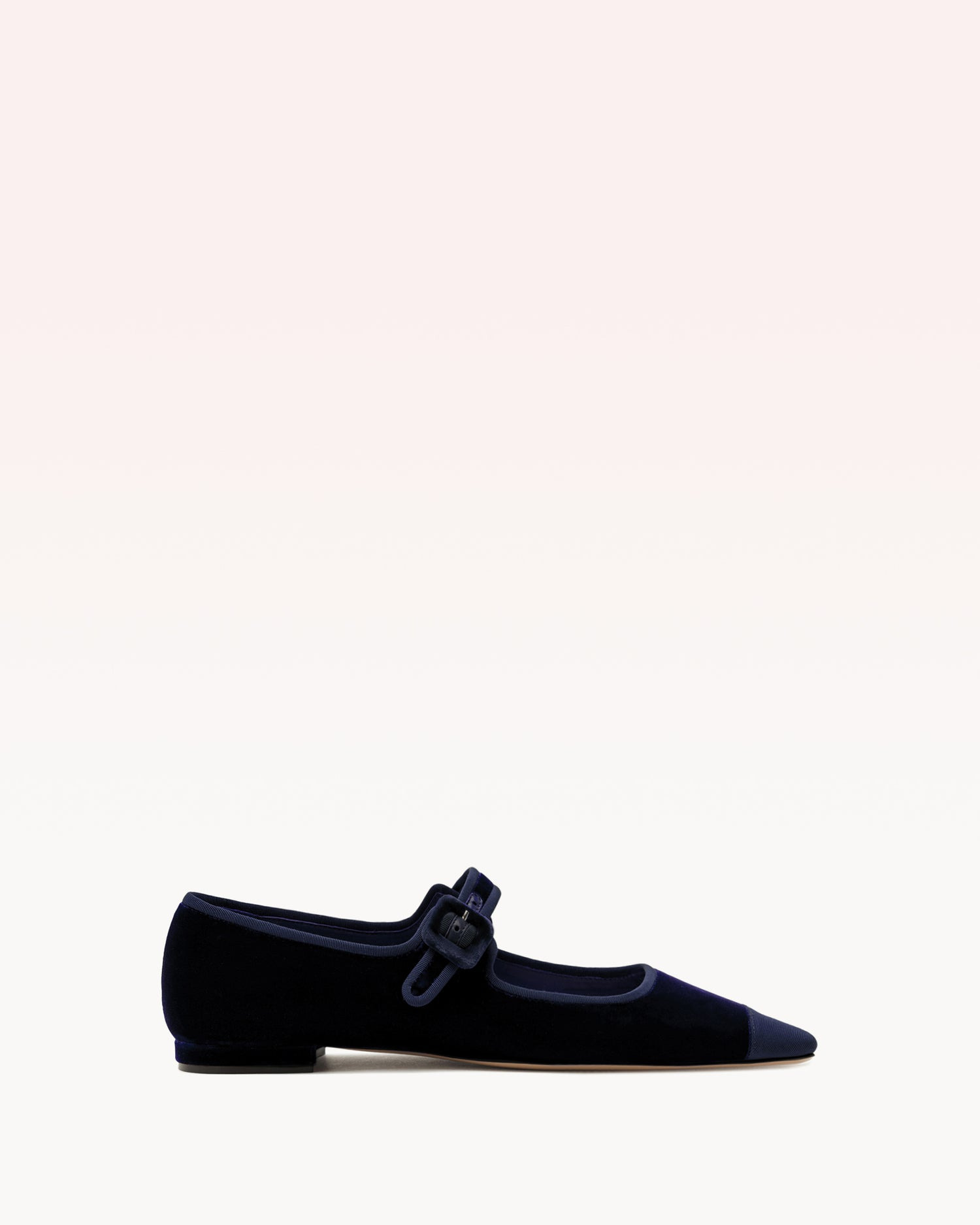 Introducing Jada Blue Pump, revolutionizing luxury and style with the use of velvet instead of suede. The velvety material combined with grosgrain and a toe cap creates a sophisticated contrast, while timeless elegance is elevated with a modern twist. Heel Style: Flat Hell Height: 0,6 In | 15 mm Heel Type: Square Toe Material: Fabric | Leather Sole SKU: B0606200100009