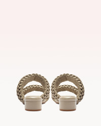 Experience the perfect blend of traditional craftsmanship and modern design with the Lilla Woven 30 sandal. The oversized soft leather bands are expertly shaped for an elegant round form, complemented by a delicate crochet of leather strings handcrafted by skilled artisans. Heel Type: Block Heel Heel Height: 30 mm | 1.1In Material: Leather | Leather Sole Round Toe SKU: B3584900040003