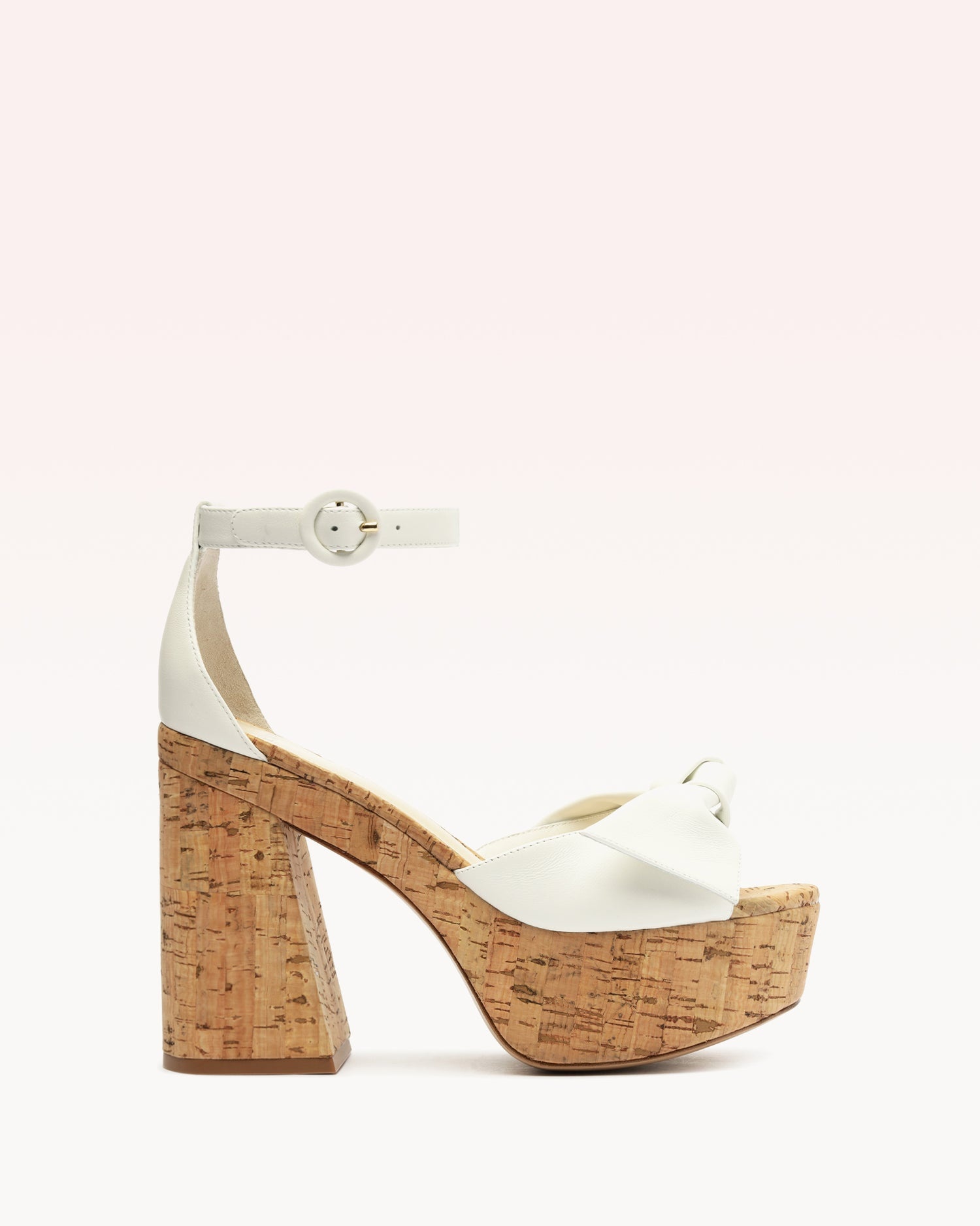 Introducing the new Maxi Claritas, crafted entirely in luxurious nappa leather and designed to elevate your summer style. Featuring a touch of cork and a bold 120mm flare block heel, these sandals effortlessly blend edgy sophistication with vibrant summer energy. The ankle buckle ensures a secure fit, making them a striking yet comfortable choice for any occasion. Material: Nappa Kiss Leather Sole Heel Type: Platform Heel Height: 4.72 In | 120 mm SKU: B3580900040001