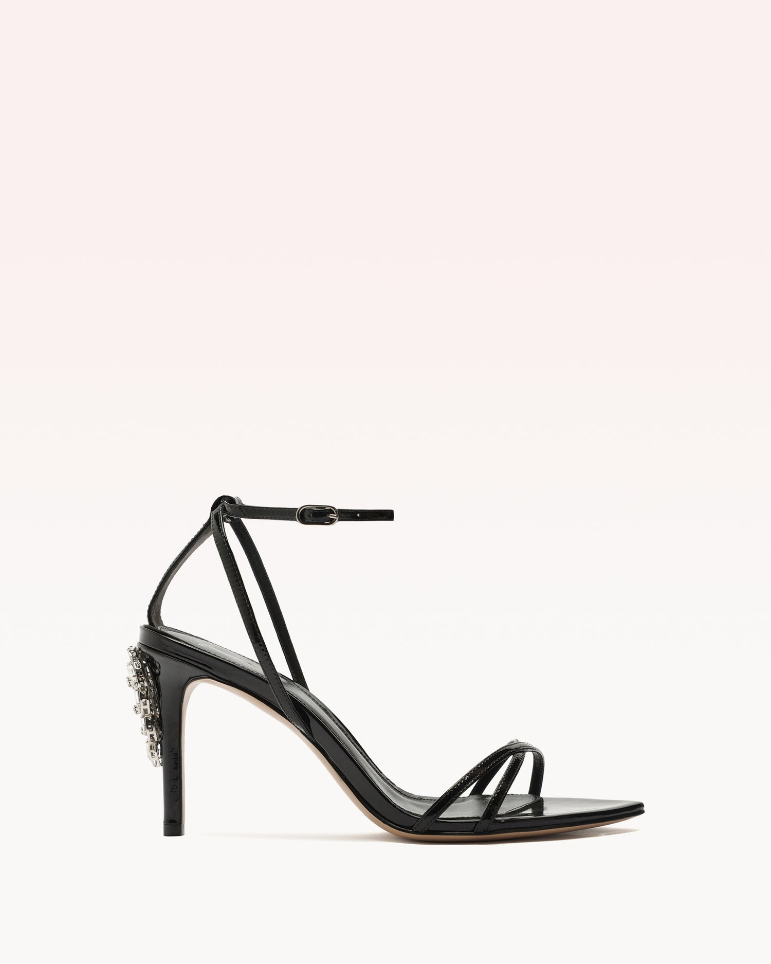 Add a touch of sophistication and glamour to your wardrobe with the Rita Crystals 85 Sandal. Made with shiny patent leather, this luxurious sandal boasts an "X" upper and a secure back strap. The true standout is the handcrafted crystal design on the heel, reminiscent of a chandelier. Elevate your style and make a statement with this exquisite piece. Heel Style: Stiletto Hell Height: 3,3 In | 85 mm Pointed Leaf Toe Material: Leather | Leather Sole SKU: B3596700080002