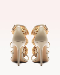Indulge in luxury with the Sadie Flower 100 sandal. Handcrafted from the finest nappa leather, its delicate string upper exudes elegance. Adorned with an opulent flower embellishment, inspired by the beauty of organic raffia, these sandals are a true work of art. Inspired by the Buriti element, each pair is a unique piece of nature's artistry. Heel Type: Stiletto Heel Heel Height: 100 mm | 3.9 In Material: Leather | Leather Sole Round Toe SKU: B3557200170001
