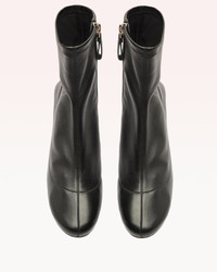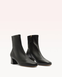 Luxurious Skinny 45 Bootie: Stretch nappa leather and lycra combine for ultimate softness and flexibility. Boasts a striking block heel and architectural curves for a sophisticated touch. Perfect for any occasion, this timeless must-have offers all-day comfort. Heel Style: Block Hell Height: 1,8 In | 45 mm Rounded Toe Material: Leather | Leather Sole SKU: B3613900050003
