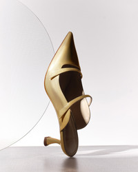 The refreshed Tita Mule reimagines one of the brand’s iconic shapes with soft side curves that elegantly hug the foot. Its natural form, complemented by a delicate color palette and metallic accents, presents a contemporary take on a timeless classic. This collection, offered in multiple heights, merges lightness, modern design, and the brand’s distinguished craftsmanship. Heel Style: Sculptural Heel Height: 2.3' | 60 mm Pointed Toe Material: Leather | Leather Sole SKU: B0606100100002