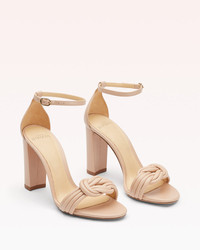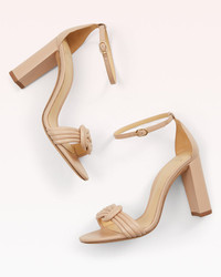This versatile silhouette is crafted from smooth leather and features our signature knotted design. The high-block heel adds both comfort and style to this day to night shoe. - Material: Capreto Leather - Block high heel - Buckled strap at ankle - Round open toe - Adorned strap at the toe - Heel height: 3.6in | 90mm - SKU: B3503901280007
