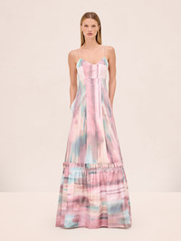 The Danelle Dress is a spaghetti strap silhouette featuring a ruched hem and watercolor-inspired print. Read more Model Measurements Height: 5'10" Bust: 34B Waist: 25" Hips: 35” Model wears an XS Read more
