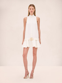 The Noemy Dress is a sleeveless mini silhouette with a belted hem. Read more Model Measurements Height: 5'10" Bust: 34B Waist: 25" Hips: 35” Model wears an XS Read more