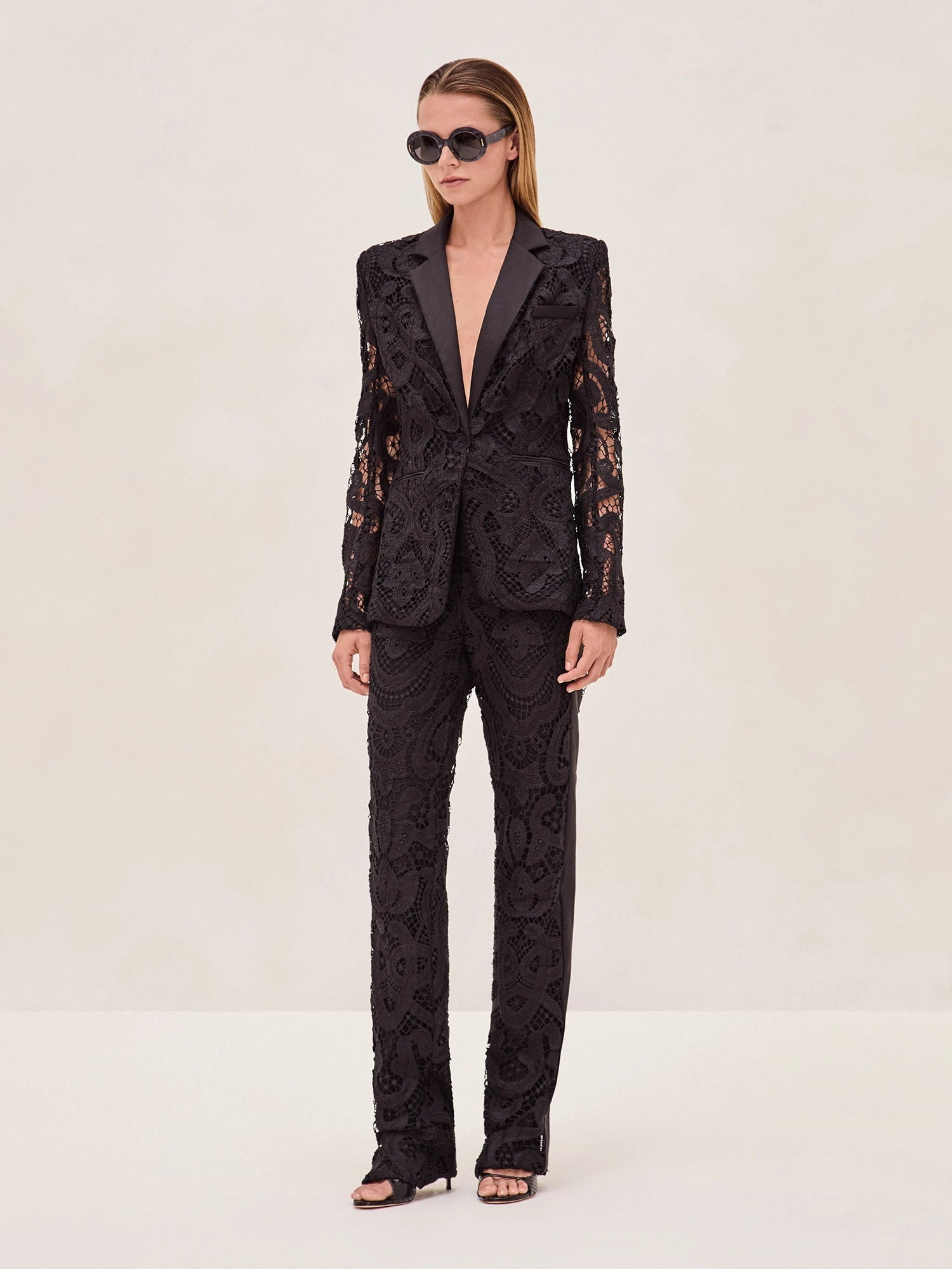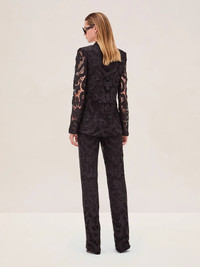 The Pierre Pants redefine suiting with their sophisticated lace detailing and tailored silhouette. Designed to elongate the legs with a flattering straight cut, these pants balance structure and elegance effortlessly. Pair them with the matching Lowel Jacket for a cohesive suiting look that’s both modern and refined. Model Measurements Height: 5'11" Bust: 32 Waist: 24" Hips: 34” Model wears XS.