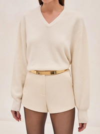 The Wallace Sweater brings an elevated approach to everyday wear. Crafted from a luxurious knit, this V-neck sweater combines classic comfort with a modern silhouette. The relaxed fit and subtle balloon sleeves offer a sophisticated yet laid-back vibe, perfect for layering or wearing solo. Model Measurements Height: 5'10" Bust: 34B Waist: 25" Hips: 35” Model wears an XS