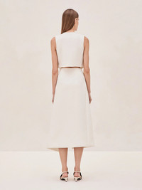 The Zilai Skirt boasts a sharp, tailored design with a high waist, lending a classic yet modern aesthetic. Adorned with a striking metallic geometric embellishment, the Zilai Skirt exudes a contemporary edge that perfectly complements its minimalist style. Coordinate it with the Athens Top for a cohesive look. Model Measurements Height: 5'10" Bust: 34B Waist: 25" Hips: 35” Model wears an XS