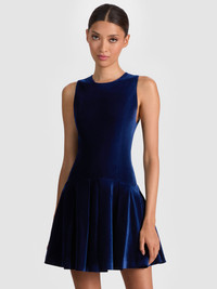 The same silhouette you know and love, now in a velvet construction perfect for cooler seasons. With its sculptural, couture shape, this drop waist mini dress is the perfect fall throw-on-and-go piece. It has a fitted bodice that opens up to a gorgeous A-line skirt, while gentle pleats give it girly volumes and an adorable flare. A truly special dress that is guaranteed to turn heads. DETAILS - Mini dress - Stretch velvet - Drop waist - Fit and flare - Pleated skirt - Back zipper closure - 97% micro polyester, 3% elastane - Dry clean only - Imported FIT - Model is 5'10" and wearing a size 0 - Length from the shoulder: 33" - Fits true to size, take your normal size