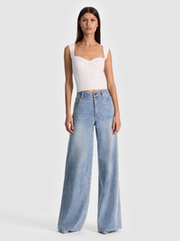The corset, but cozy. This wool-blend knit is designed with a sculpted, square neckline, cropped hem, and a textured finish that adds depth. Structured enough to hold its shape yet soft enough to wear all day, it’s the perfect mix of sexy and easy. Wear it solo with trousers or layered under blazers and cardigans for a modern approach to corseting. DETAILS - Wool corset - Cropped - Sleeveless - Back zipper closure - 89% merino wool, 10% nylon, 1% elastane - Dry clean only - Imported FIT - Model is 5'10" and wearing a size XS - Length from the shoulder: 18 1/2" - Fits true to size, take your normal size