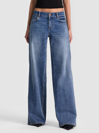 Introducing: The Amazing Jean. Low rise. Wide leg. Effortless everyday ease. The Amazing Jean perfects the baggy silhouette with stretchy cotton that drapes just right and feels better with every wear. Belt loops and a classic button-zip closure keep it timeless. Wear it slouchy, style it sleek-either way, you'll look AMAZING. DETAILS - Baggy jean - Low rise - Wide leg - Belt loops - Front button and zipper closure - 99% cotton, 1% elastane - Turn inside out and machine wash on cold with like colors - Imported FIT - Model is 5'10" and wearing a size 24 - Front rise: 9 1/8" - Inseam: 34 1/2" - Fits true to size, take your normal size