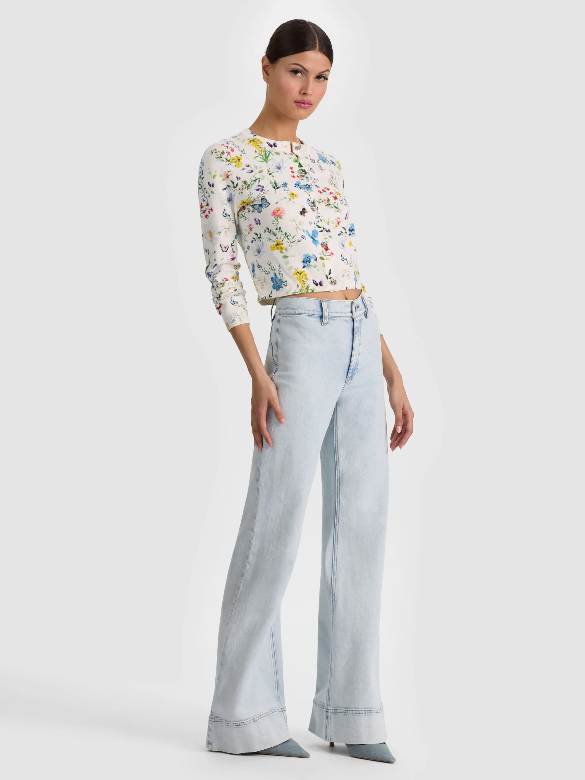 A little cardigan with a lot of personality. Carson is cropped, close-fitting, and adorned in colorful florals that feel straight out of a vintage flea market. The 100% cotton construction is soft to the touch and hugs the body just right, while the shrunken silhouette keeps things fitted and flirty. Preppy, playful, and unexpectedly cool. DETAILS - Floral printed cardigan - Shrunken fit - Cropped - Floral button front closures - 100% cotton - Dry clean only - Imported FIT - Model is 5'10" and wearing a size XS - Length from the shoulder: 18 1/2" - Fits true to size, take your normal size