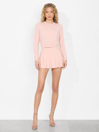 Our bestselling Carter Skirt is back, now in a feminine shade of pink. It’s made from a luxe linen blend and tailored in a girly A-line shape. Crisp pleats create beautiful movement as you walk. An effortless throw-on-and-go style, we love wearing this with everything from knitwear to crisp button-downs to t-shirts. DETAILS - Mini skirt - Stitch pleats - Back zipper closure - Linen - 56% linen, 43% viscose, 1% elastane - Dry clean only - Imported FIT - Model is 5'10" and wearing a size 0 - Skirt length: 12 1/2" - Fits true to size, take your normal size