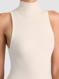 An ecru ribbed tank (with a crazy-flattering fit) is a wardrobe staple and this one fits the bill perfectly. It's constructed from a luxe wool blend and includes a turtleneck perfect for fall weather, while the sleeveless construction keeps things light and easy for layering. DETAILS - Wool tank - Fitted - Turtleneck - Sleeveless - Pullover - 79% wool, 18% nylon, 3% elastane - Dry clean only - Imported FIT - Model is 5'10" and wearing a size XS - Length from the shoulder: 21 1/2" - Fits true to size, take your normal size