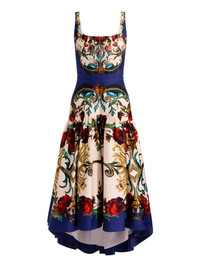 The dress to end all dresses. With a structured corset bodice, fitted waist, and tiered A-line skirt, our Diana is the drama that moves with you. Crafted in stretch cotton sateen, it hugs and flatters without sacrificing comfort. Polished enough for formal events, yet playful enough to style with boots and a moto jacket- this is the dress that goes everywhere, looking amazing at every turn. DETAILS - Midi dress - Printed cotton sateen - A-line - Structured corset bodice with front hook closures - Tiered skirt - Back zipper closure - 97% cotton, 3% elastane - Dry clean only - Imported FIT - Model is 5'10" and wearing a size 0 - Length from the shoulder: 50" - Fits true to size, take your normal size