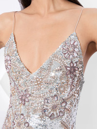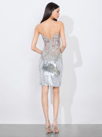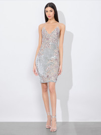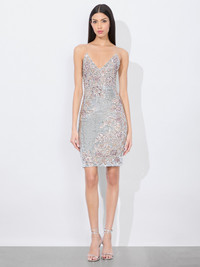 Dripping in thousands of sequins, paillettes and crystal appliques, this dress is like liquid glamour. It’s fitted, midi silhouette has been embellished by hand, which is what makes its sparkling beadwork look and feel so special. It’s deep v neckline frames the decolletage beautifully-and it’s mirrored in the back. Wear it to your next big event and all eyes will be on you. DETAILS - Sequined - Midi length - Embellished crystal appliques - Lined - Back zipper closure - 91% nylon, 9% elastane - Dry clean only - Imported FIT - Model is 5'10" and wearing a size 0 - Length from the shoulder: 37 1/2" - Fits true to size, take your normal size