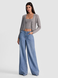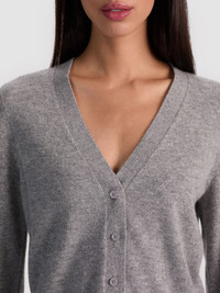 The kind of grey cardigan that elevates everything else in your closet. Grace is spun from 98% luxury cashmere and cut in a cropped, fitted silhouette that layers like a dream. Delicate button-front closures and a subtly heathered grey hue keep it timeless and wearable, whether you’re lounging at home or layering up for the office. For a full look, pair it with the matching Maude bralette underneath-cozy, polished, and completely pulled together. DETAILS - Cashmere cardigan - Cropped - Button front closures - 98% cashmere, 2% nylon - Dry clean only - Imported FIT - Model is 5'10" and wearing a size XS - Length from the shoulder: 18 1/2" - Fits true to size, take your normal size