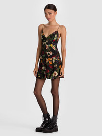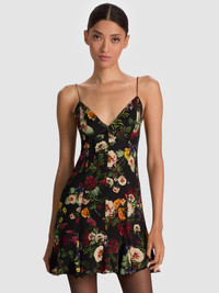 This floral slip mini dress is absolutely charming! It's cut from a soft, flowy double viscose, printed in a delicate floral. The V-neckline and fitted bodice create a flattering silhouette, while the pleated godet skirt adds a flirty touch. This dress would be great for any outing-whether it's brunch, a date, or even a casual day out. It’s such a versatile, effortlessly stylish piece. DETAILS - Mini slip dress - Printed double viscose - V-neck - Pleated godet skirt - Back zipper closure - 100% viscose - Dry clean only - Imported FIT - Model is 5'10" and wearing a size 0 - Length from the shoulder: 33" - Fits true to size, take your normal size