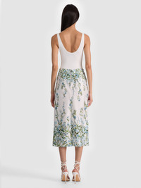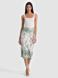 A silhouette that always delivers. This bias-cut midi slip skirt skims the body beautifully, crafted from printed satin that moves with ease. The print feels light and fresh, while the streamlined shape makes styling effortless. Dress it up with a silk camisole or down with a knit--it adapts seamlessly. DETAILS - Midi satin slip skirt - Printed - Bias cut - Back zipper closure - 100% polyester - Dry clean only - Imported FIT - Model is 5'10" and wearing a size 0 - Skirt length: 31 1/4" - Fits true to size, take your normal size