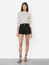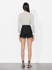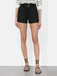 We took one of our best-selling pant silhouettes and crafted her in a new version for the warmer months. Reintroducing the Mame -she has the same flattering fit you know and love, now in a tailored short to show off those legs. Crafted in a lightweight linen blend, she's the perfect pairing piece to add to your rotation all spring and summer. DETAILS - Mini shorts - Linen - High rise - Double button front closure - Wide waistband - 56% linen, 43% viscose, 1% elastane - Dry clean only - Imported FIT - Model is 5'10" and wearing a size 0 - Front rise: 11 1/4" - Inseam: 3" - Fits true to size, take your normal size