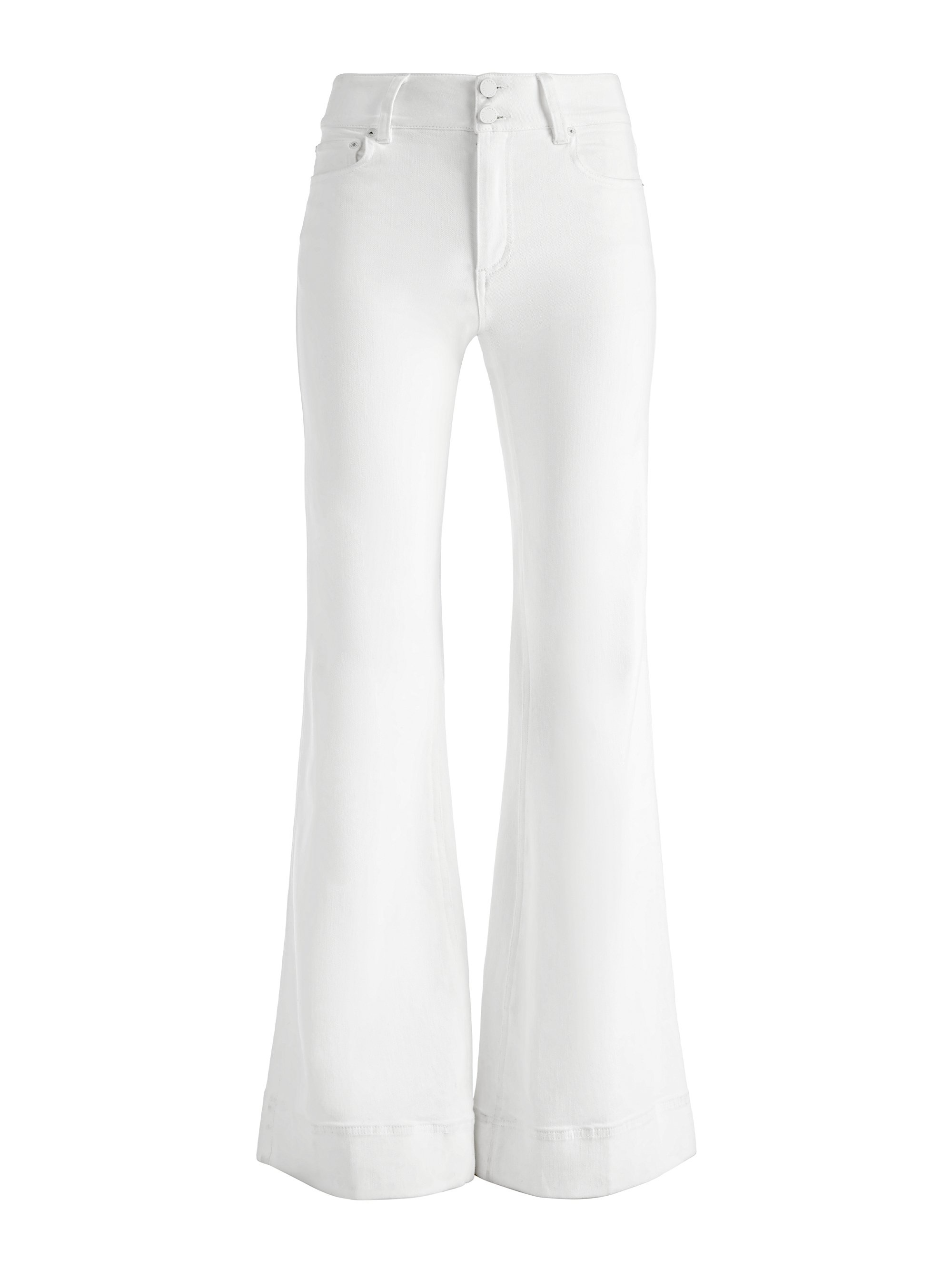 This wide leg jean exudes New Wave vibes in the very best way, with its high rise, off white shade, classic 5-pocket design and unbeatable fit. It's basically our version of exactly what a white jean should be. DETAILS - Wide leg jean - High rise - Seamed hem - Full length - Belt loops - Double front button closure - 94% cotton, 4% elastomultiester, 2% elastane - Turn inside out and machine wash on cold - Imported FIT - Model is 5'10" and wearing a size 26 - Front rise: 10 3/4" - Back rise: 14 1/2" - Inseam: 34 1/2" - Fits true to size, take your normal size