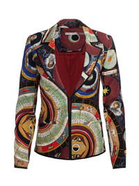 A blazer that does it all. Mya is tailored in satin-back crepe with a sharp notch collar, strong shoulders, and a sculpted waist that creates a subtle hourglass shape. The bold, abstract print makes it statement-making, while the classic single-breasted closure keeps it polished. Toss it over denim for day or wear it with its matching trousers and heels for night- either way, it’s giving major boss babe energy. DETAILS - Printed blazer - Satin back crepe - Fitted - Notch collar - Strong shoulders - Front hook closures - 62% recycled polyester, 36% polyester, 2% elastane - Dry clean only - Imported FIT - Model is 5'10" and wearing a size 0 - Length from the shoulder: 25 1/2" - Fits true to size, take your normal size