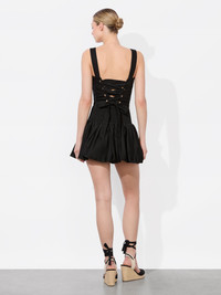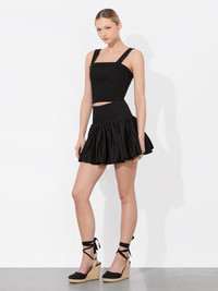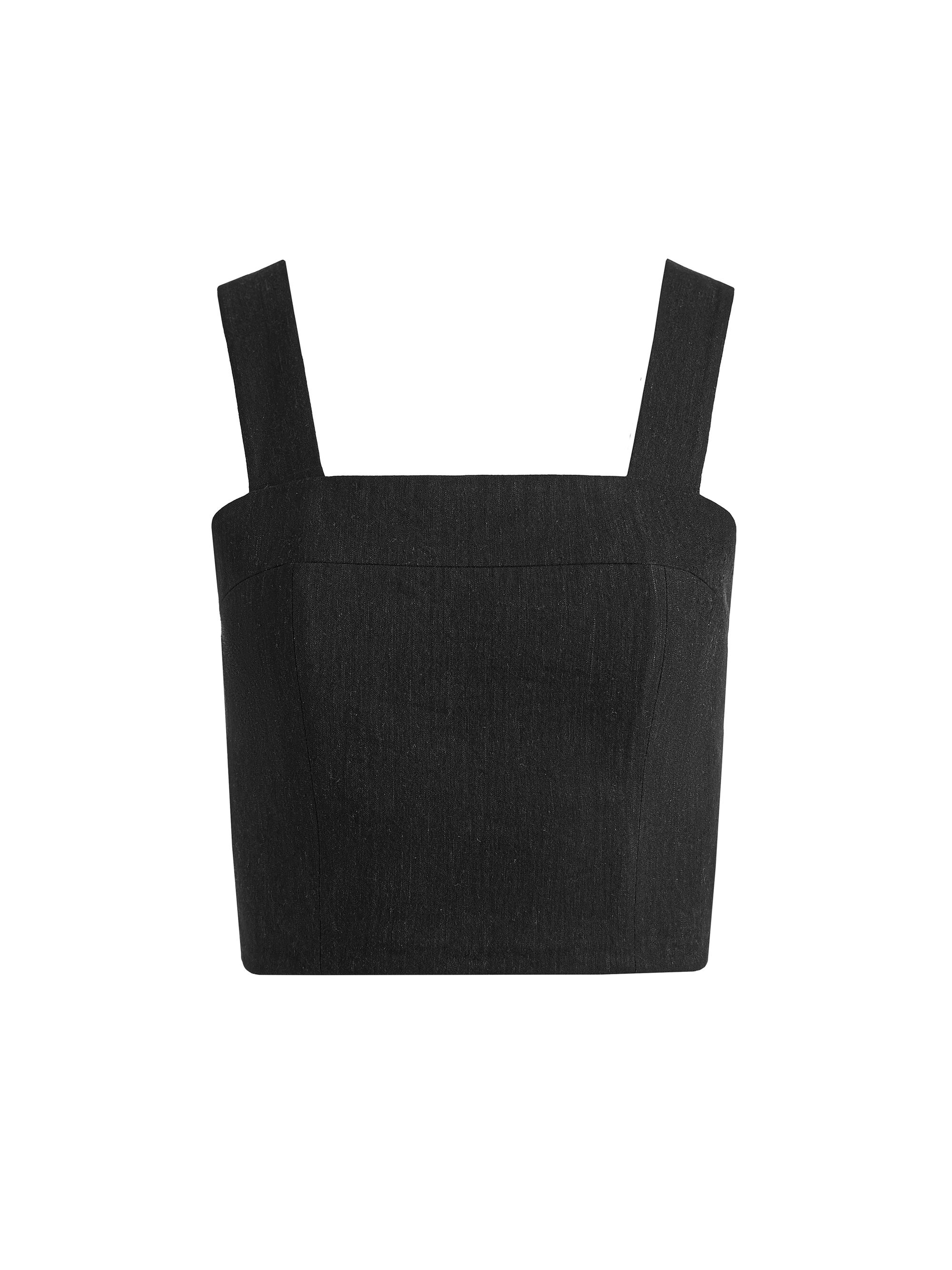 A fresh twist on a timeless silhouette- this black corset crop top is made to turn heads. Cut from a breathable linen-viscose blend, the structured bodice is fitted with wide straps and a lace-up back that lets you cinch it to your exact shape. It’s an ode to summer styling: effortless, confident, and just a little flirty. Pair it with denim, gold hoops, and plans that start at golden hour. DETAILS - Linen tank - Cropped - Lace up back - 56% linen, 43% viscose, 1% elastane - Dry clean only - Imported FIT - Model is 5'10" and wearing a size 0 - Length from the shoulder: 17" - Fits true to size, take your normal size