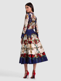 A midi skirt with a maxi impact, Nilda is crafted in a rose printed cotton sateen that feels so effortlessly timeless. Pair her with a simple tank to balance out the voluminous silhouette, or throw on the matching button down for a more sophisticated look. DETAILS - Midi skirt - Printed cotton stretch sateen - High rise - A-line fit - Back zipper closure - 97% cotton, 3% elastane - Dry clean only - Imported FIT - Model is 5'10" and wearing a size 0 - Skirt length: 55" - Fits true to size, take your normal size