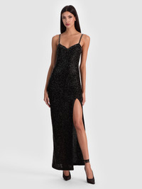 Introducing After Five, our new cocktail dressing collection--because it's 5 o'clock somewhere. The Nina is the kind of dress made to turn heads. Crafted in beaded mesh with crystal embellishments tracing the straps and neckline, it's designed to glimmer from every angle. The sweetheart neckline flatters the d?colletage while the fitted silhouette elongates the body, creating an ultra-flattering, statuesque effect. It's the height of glamour--elegant and unapologetically sexy. DETAILS - Maxi dress - Beaded mesh - 3D crystal embellished trim - Fitted - Sweetheart neckline - Back zipper closure - 91% nylon, 9% elastane - Dry clean only - Imported FIT - Model is 5'10" and wearing a size 0 - Length from the shoulder: 57" - Fits true to size, take your normal size