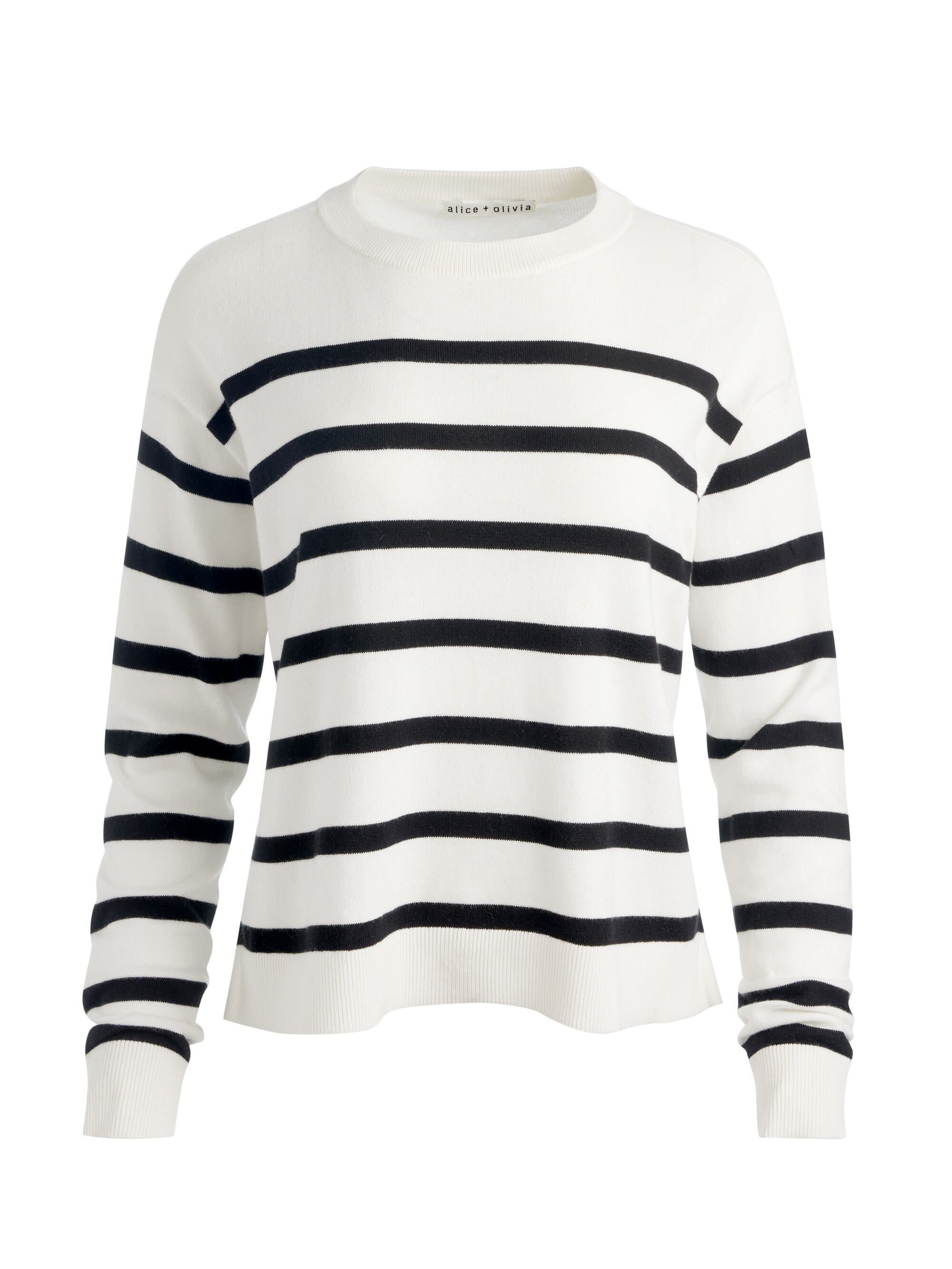 With an easy, relaxed fit, the Patterson striped crew neck is that effortless sweater you can quickly throw on and look great in. This one has side slits for an added touch and is crafted from luxe cotton with a hint of stretch for ultimate comfort. DETAILS - Striped sweater - Crew neck - Side slits - 99% cotton, 1% elastane - Dry clean only - Imported FIT - Model is 5'10" and wearing a size XS - Length from the shoulder: 23" - Fits true to size, take your normal size