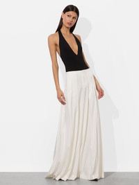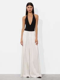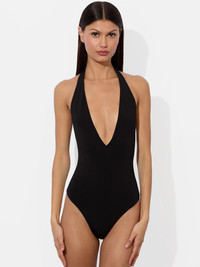 Simple, sexy, cool - our Pippa bodysuit belongs in every woman’s closet. Its smoothing, sculpting bodice is shaped in an alluring deep v-neck for the most flattering fit. Cut from a soft knit viscose with a hint of stretch, it's as comfy as it is cute. a+o styling tip: wear your hair up to show off the cute tie back closure! DETAILS - Bodysuit - Deep V-neck - Thong back with snap closure - Smooth viscose jersey - Halter with tie back closure - 90% viscose, 10% elastane - Dry clean only - Imported FIT - Model is 5'10" and wearing a size XS - Length from the shoulder to hip seam: 23" - Fits true to size, take your normal size