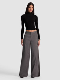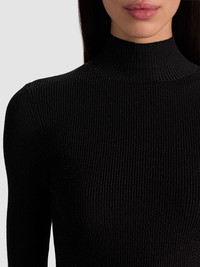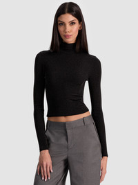 The sleekest base layer in your closet. Roberta is a ribbed knit turtleneck in a slim, fitted shape that hugs just right. With long sleeves and a cropped hem, it layers seamlessly under blazers and jackets or stands alone with denim and minis. A staple made in a luxe wool blend, it balances comfort with polish- effortless, elevated, and endlessly versatile. DETAILS - Turtleneck top - Ribbed - Fitted - Long sleeve - 79% wool, 18% nylon, 3% elastane - Dry clean only - Imported FIT - Model is 5'10" and wearing a size XS - Length from the shoulder: 21 1/2" - Fits true to size, take your normal size