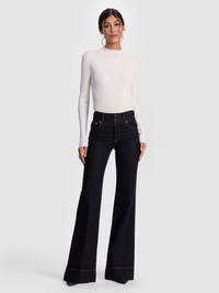 The sleekest base layer in your closet. Roberta is a ribbed white turtleneck in a slim, fitted shape that hugs just right. With long sleeves and a full length hem, it layers seamlessly under blazers and jackets or stands alone with denim and minis. A staple made in an ultra soft rayon, it balances comfort with polish--effortless, elevated, and endlessly versatile. DETAILS - White turtleneck top - Ribbed - Fitted - 100% rayon - Dry clean only - Imported FIT - Model is 5'10" and wearing a size XS - Length from the shoulder: 21" - Fits true to size, take your normal size