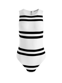 A base layer that goes bold. The Rothy bodysuit is made from ribbed knit with horizontal paddleboard stripes, a sculpting fit, and a clean crew neckline. With a thong back and snap closures, it’s sleek under suiting-or just as cute worn solo with wide-leg jeans. DETAILS - Sculpting bodysuit - Crew neck - Horizontal stripes - Thong back with snap closures - Back zipper closure - 97% viscose, 3% elastane - Dry clean only - Imported FIT - Model is 5'10" and wearing a size XS - Length from the shoulder: 23" - Fits true to size, take your normal size
