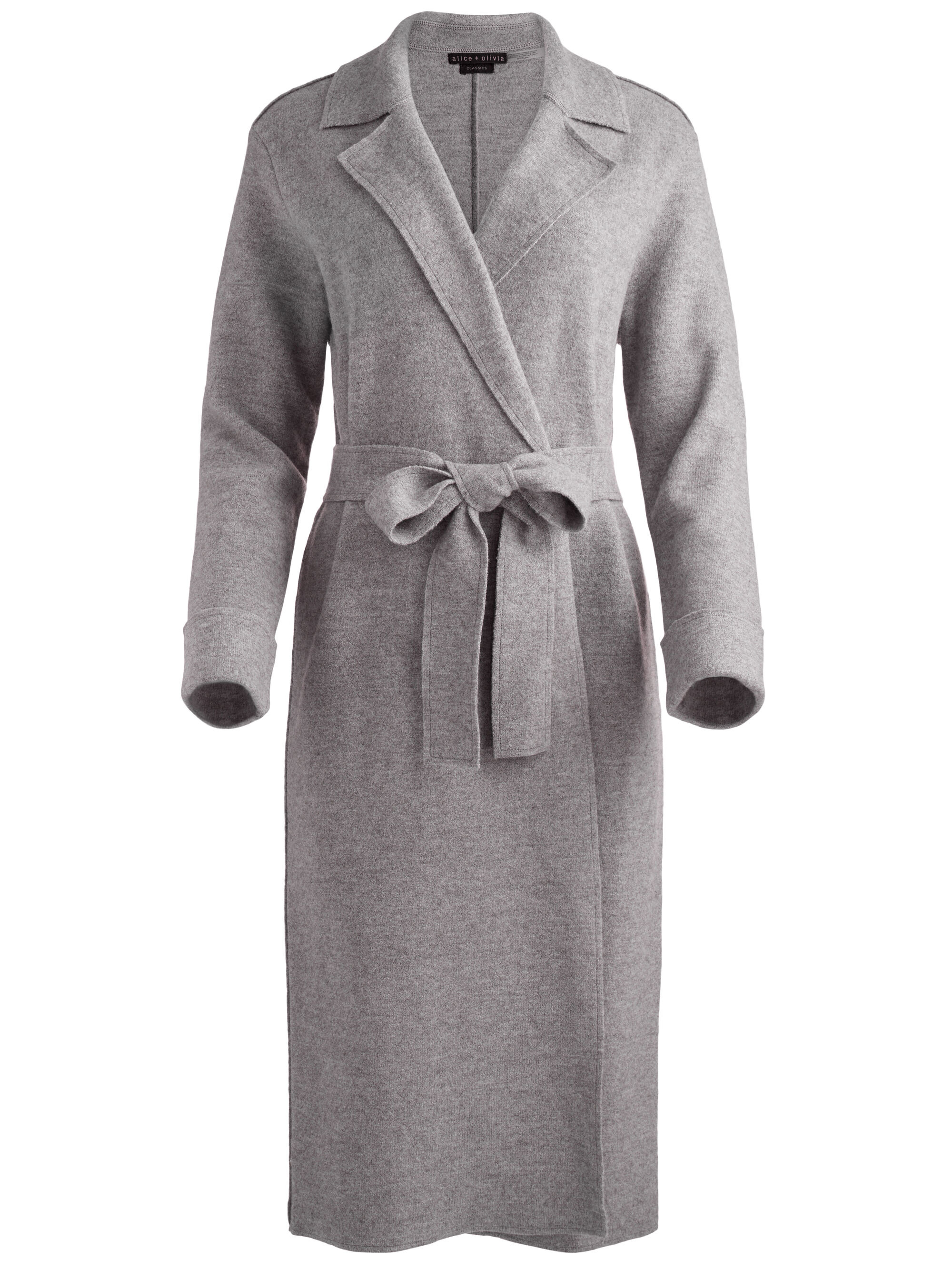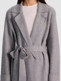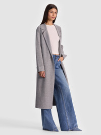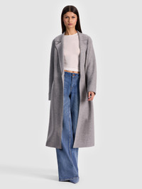 Rowan is as effortless as it is elegant: a merino wool coat with a fluid wrap shape, notched collar, and tie waist that recalls the silhouette of a luxe robe. Strong shoulders and a back vent add polish, while its midi length makes it versatile for layering. The combination of coziness and structure means you’ll reach for it again and again. A true fall wardrobe hero. DETAILS - Wool coat - Wrap front - Midi length - Adjustable tie waist - Notch collar - Back vent - 100% merino wool - Dry clean only - Imported FIT - Model is 5'10" and wearing a size XS - Length from the shoulder: 47" - Fits true to size, take your normal size